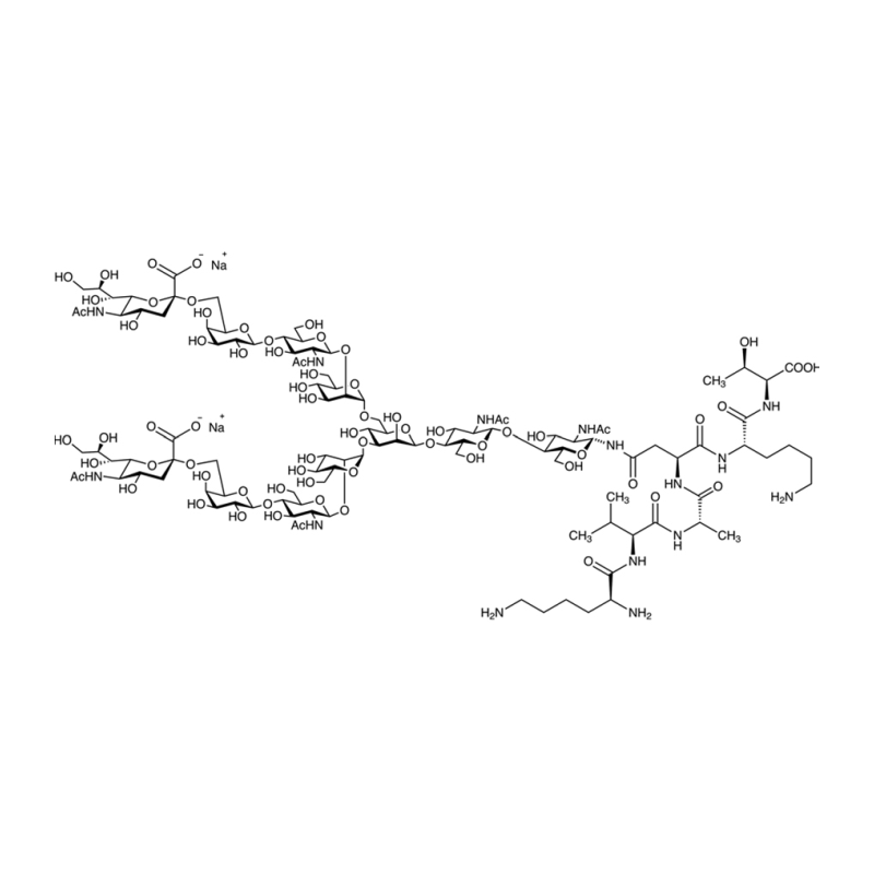 Sialylglycopeptide 是一种复杂的 N-聚糖,带有一个短肽片段。Sialylglycopeptide 作为半合成 N-聚糖的起始原料,可用于各种研究。