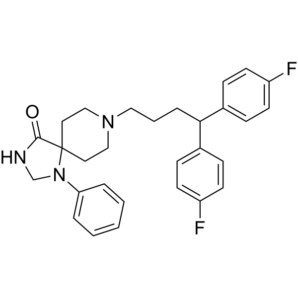Fluspirilene是 L 型钙通道的非竞争性拮抗剂,IC50为 0.03 μM。Fluspirileneis 是一种用于精神分裂症的长效可注射抗精神病活性分子。