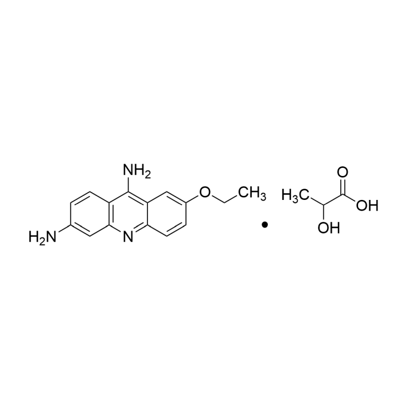 Ethacridine lactate (Acrinol) 是一种广泛使用的抗菌剂和流产剂。Ethacridine lactate 可有效抵抗金黄色葡萄球菌和其他革兰氏阳性球菌。Ethacridine lactate 也是聚 (ADP-核糖) 糖基水解酶 (PARG) 抑制剂。