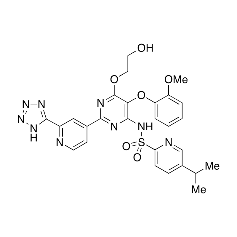 Tezosentan (RO 610612) 是内皮素 (ET) 受体的一个拮抗剂,其对 ETA 和 ETB 受体的 pA2 值分别为 9.5,7.7。
