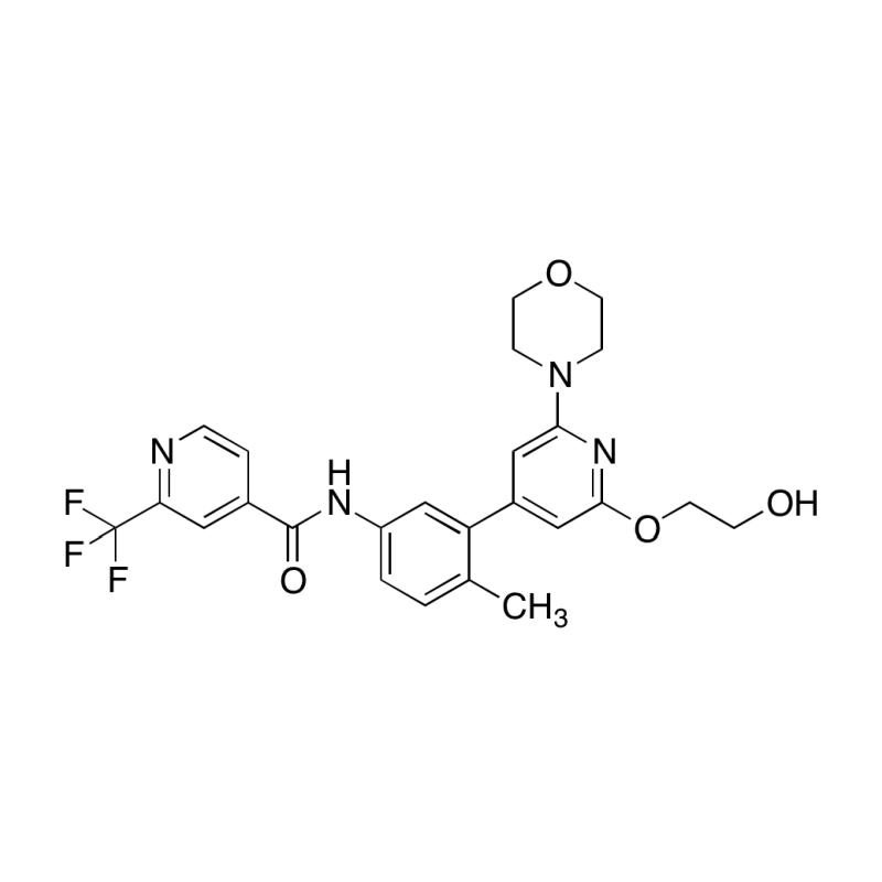 Naporafenib (LXH254) 是一种有效的、具有口服活性的 II 型 BRAF 和 CRAF 抑制剂,对 CRAF 和 BRAF的 IC50 值分别为 0.072 和 0.21 nM。