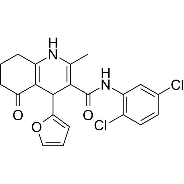 AR420626 是游离脂肪酸受体3 (FFAR3, GPR41) 的选择性激动剂,IC50为117 nM。AR420626 抑制尼古丁和 5-羟色胺诱导的大鼠结肠离体肌条运动的变化,并抑制 5-羟色胺诱导的大鼠排便。