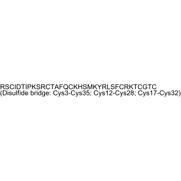 ShK toxin 阻断电压依赖性钾通道 (Kv1.3 通道)。ShK toxin 可以从加勒比海葵 (Stichodactylu helianthus) 的全身提取物中分离出来。ShK toxin 与树突毒素 I 和 α-树突毒素竞争与大鼠脑突触体膜的结合,促进乙酰胆碱的释放。ShK toxin 抑制培养的大鼠背根神经节神经元中的 K+ 电流。ShK toxin 还抑制 T 淋巴细胞增殖。