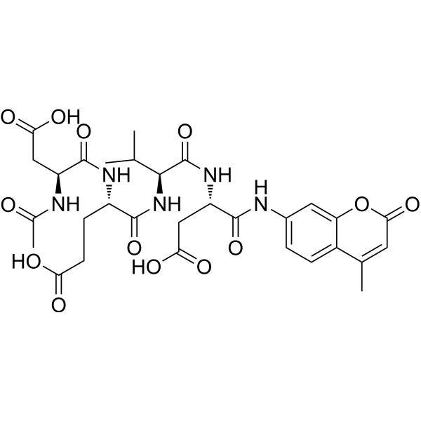 Ac-DEVD-AMC 是一种 caspase-3/caspase-7 荧光底物。用细胞裂解物处理 Ac-DEVD-AMC 时,Ac-DEVD-AMC 会释放氨基-4-甲基香豆素 (AMC) 用于荧光检测,激发波长为 380 nm,发射波长为 460 nm。